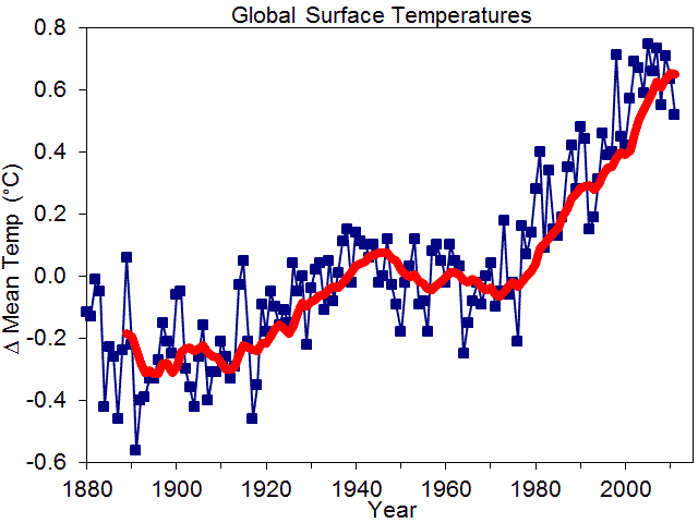 When one examines global temperature changes, the data shows a 0.6°C increase in worldwide temperatures over the last 150 years.17 This increase is a fairly large for such a short period of time, but is it outside the range of change that has been observed in the past?